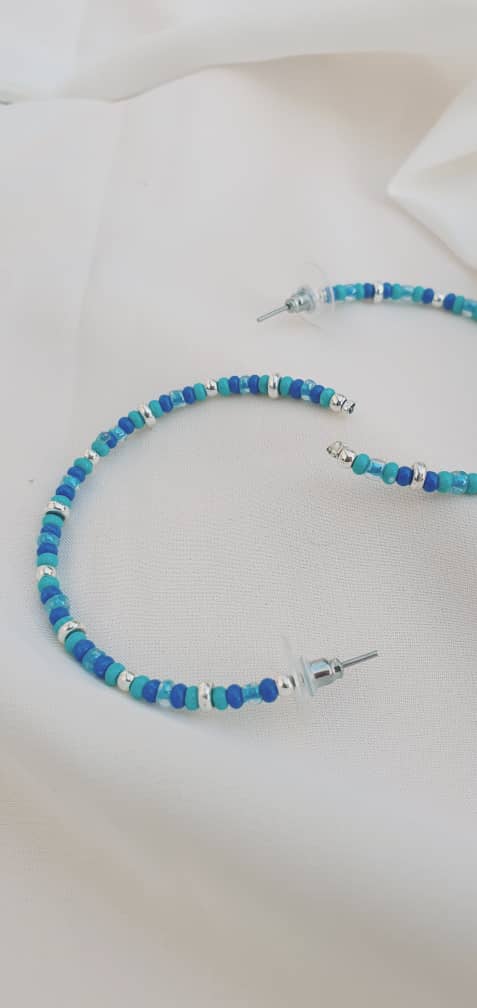گوشواره با نگین های آبی، میخی، با قطر 5.5 سانتی متر مناسب استایل های اسپرت و دورهمی های دوستانه . این محصوول وارداتی می باشد.